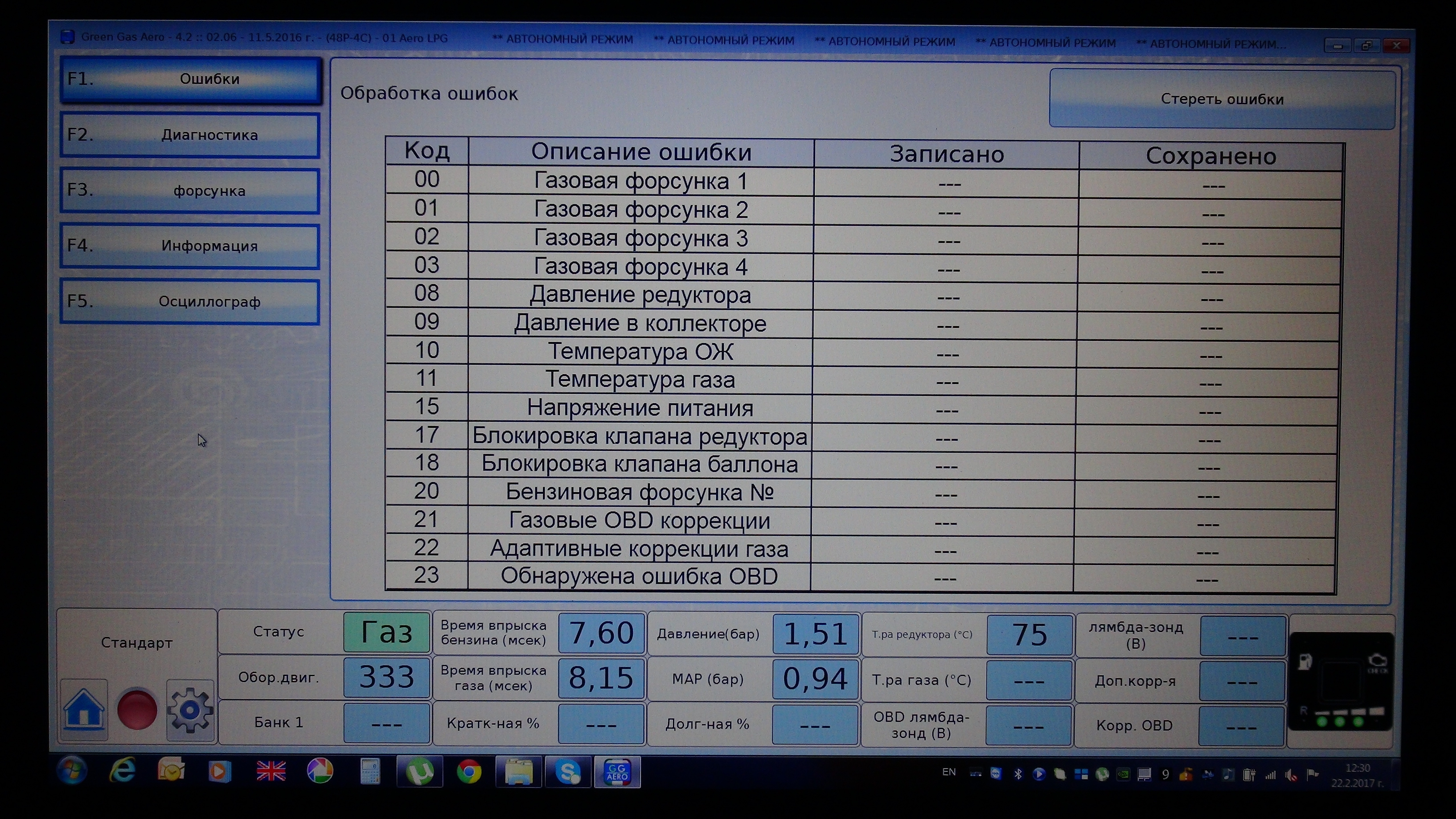 Софтуера на GREEN GAS AERO ,